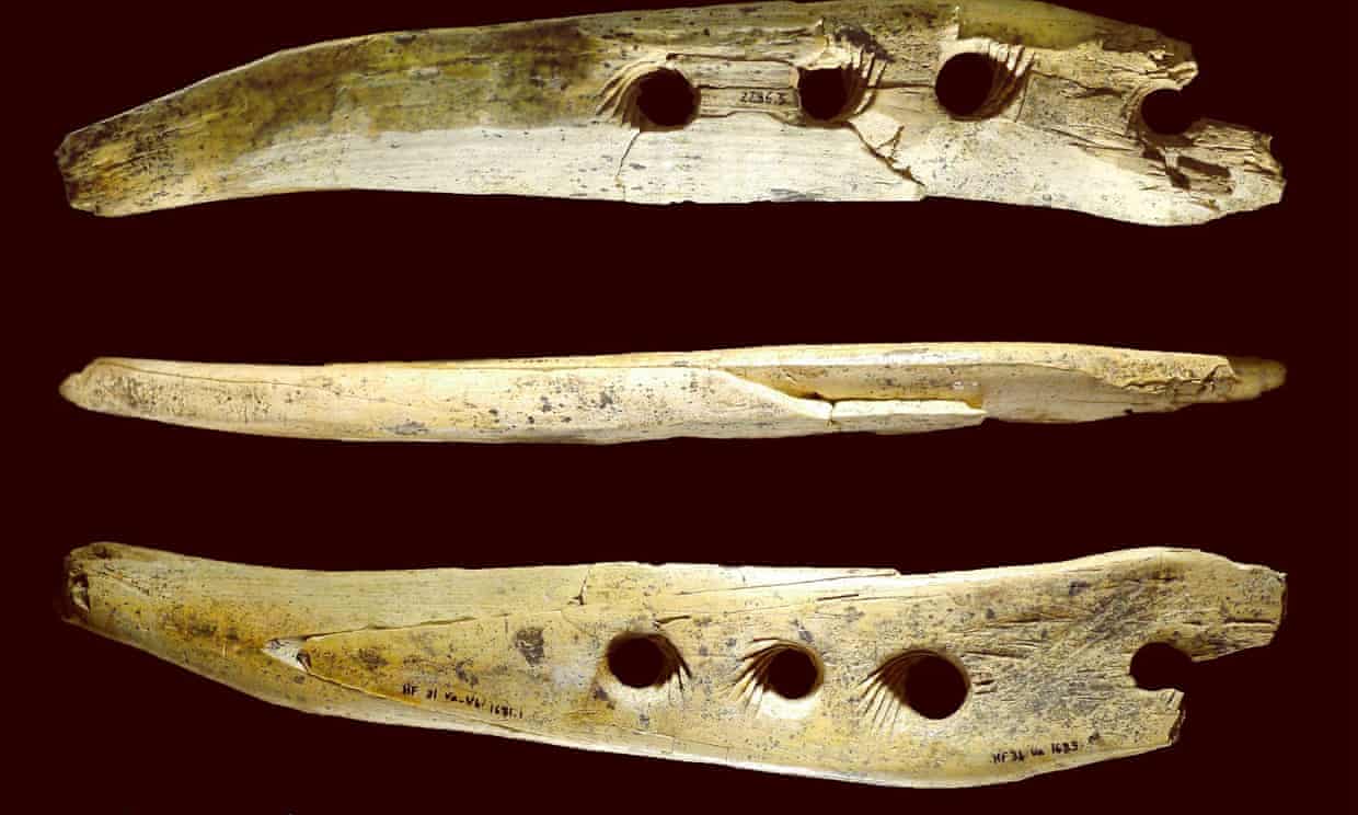 Forty thousand years ago, a stone-age toolmaker carved a curious instrument from mammoth tusk. Twenty centimetres long, the ivory strip has four holes drilled in it, each lined with precisely cut spiral incisions.