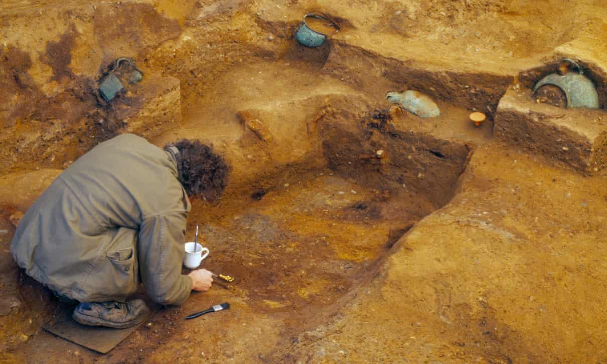 An archaeologist excavates the Saxon ‘Prince of Prittlewell’ grave site before developers move in. Photograph: Mola
