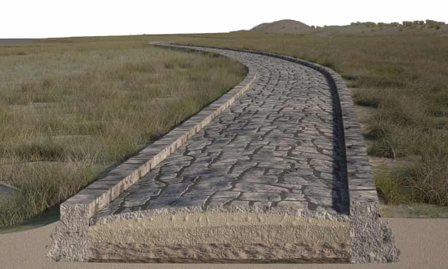 A digital reconstruction of the Roman road submerged in the Venice lagoon, which seems to have been part of a road system in the Veneto region.